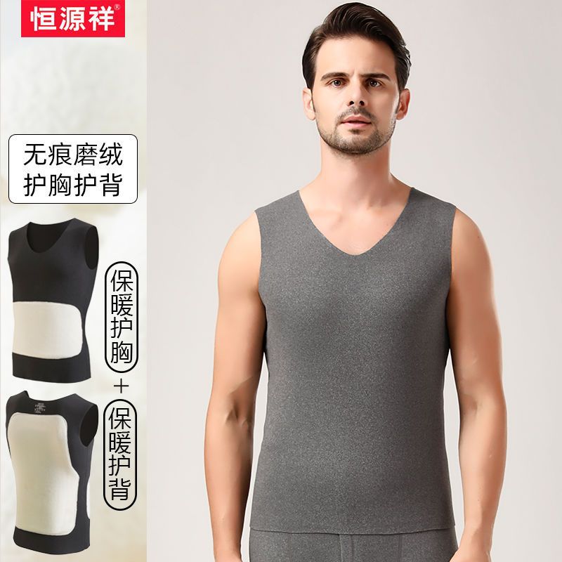 恒源祥男士保暖背心无痕加厚马甲加绒德坎肩打底衫内穿秋冬季 180 1件装-浅灰-保暖护胸护背