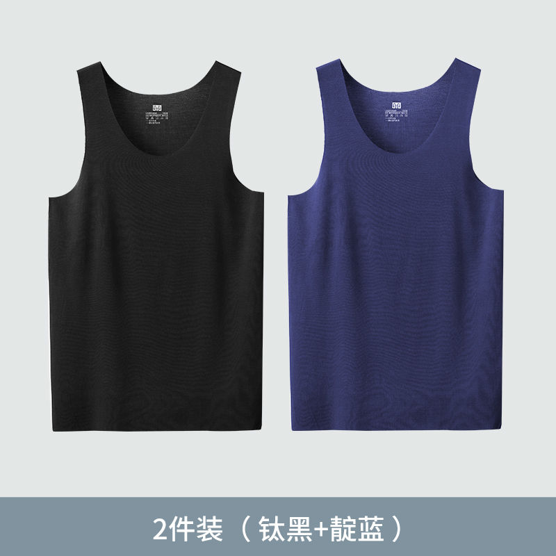 恒源祥背心男士夏季薄款透气冰丝无痕内穿打底汗衫运动跨栏无袖潮 190/4XL 【2件】冰丝无痕背心【黑/蓝】