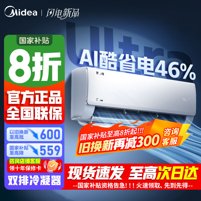 货品包装完整无缺风力够凉给力噪音小OK两个安装师傅配合非常好nice这款美的空调挂机真的很省电,我家用了一段时间,电费明显下降了