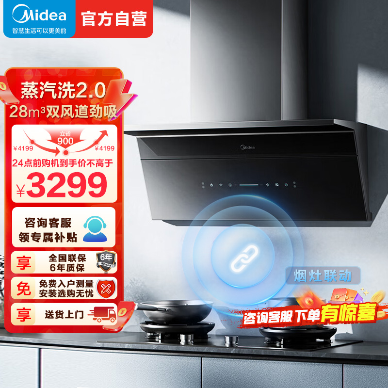 美的(Midea)蒸汽洗2.0 AK11抽吸排油烟机28量超薄顶侧一体MAX双风道侧吸自清洁烟机CXW-140-AK11