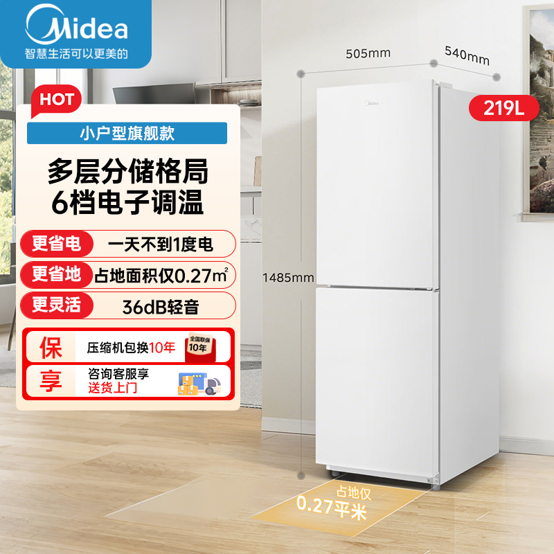 美的冰箱(Midea)181升双门冰箱 家用双温冷藏冷冻大容量保鲜低音 超薄电冰箱 小户型两开门 MR-190E 极地白