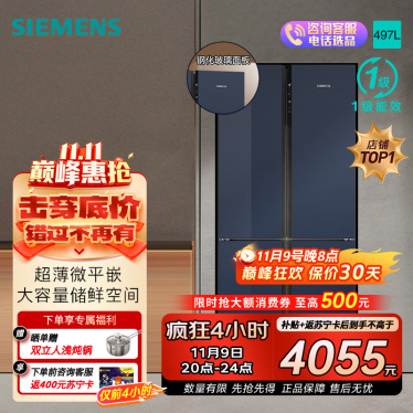 西门子[十字星系列玻璃门]线下同款497升四开门变频冰箱 60.9cm超薄机身微平嵌 支持国家补贴 KC82EA256C