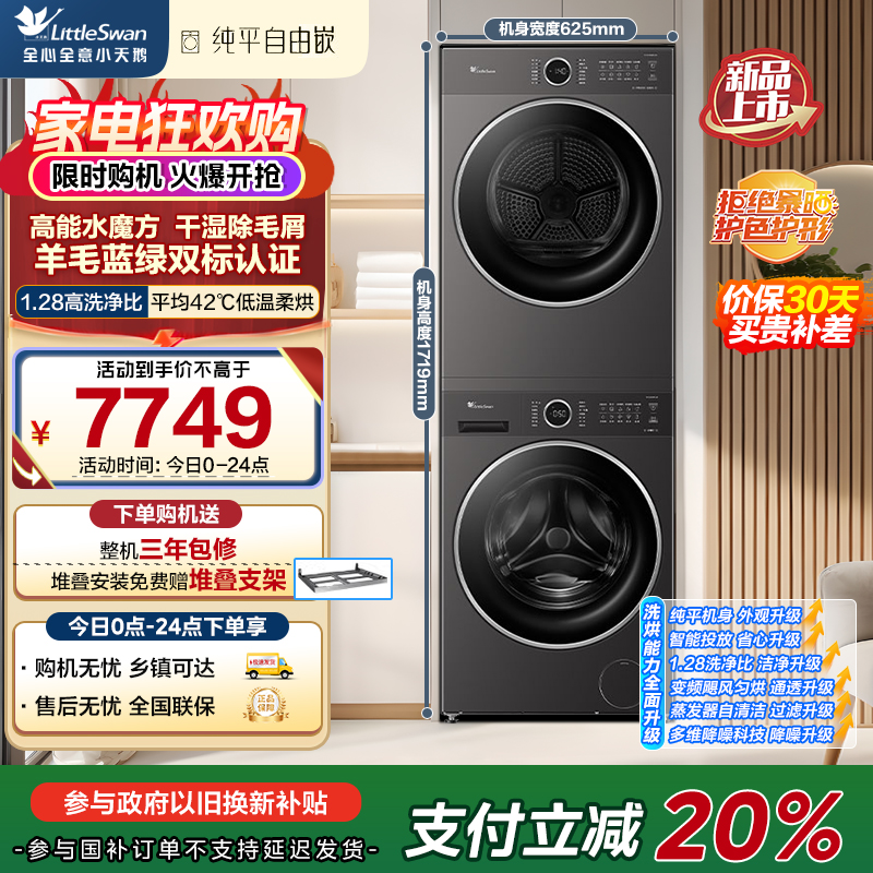 小天鹅 水魔方洗烘套装 变频热泵烘干机 纯平自由嵌 智能投放 TG10V628PLUS+TH10VH628PLUS