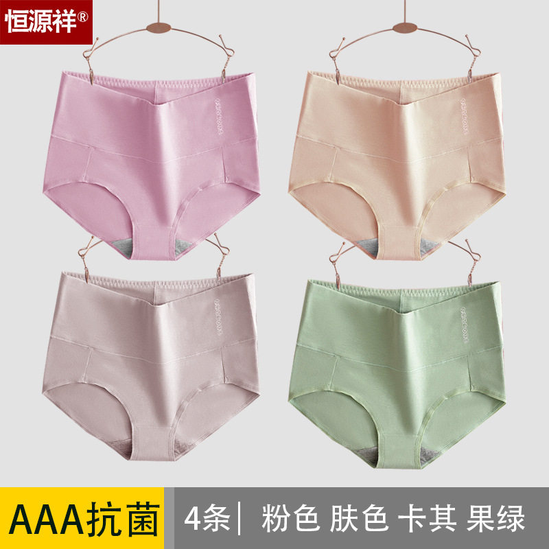 恒源祥内裤女纯棉高腰收腹女士石墨烯裆大码三角短裤头棉夏 M 主图爆款高腰抗菌(粉色肤色卡其果绿)