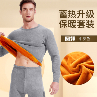 南极人发热衣男士加厚加绒德冬季发热青年秋衣卫生裤套装防寒大尺码 单套蓄热中灰色 4XL建议180-200斤