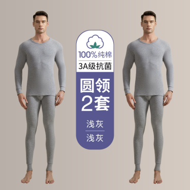 南极人男士秋衣秋裤套装纯棉打底全棉毛衫线衣裤保暖内衣薄款冬季 买1送1100%纯棉抗菌*2套浅灰+浅灰 175(XL)推荐体重120-140斤