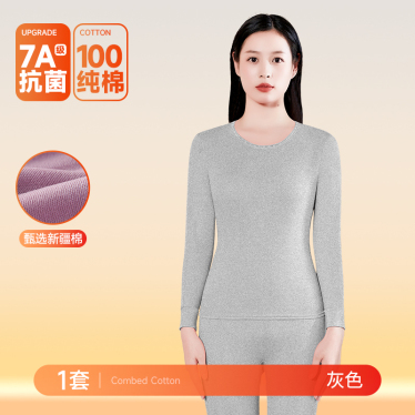 南极人发热衣女士纯棉秋衣裤卫生裤套装薄款全棉毛衫冬季卫生衣卫生裤 浅灰100%新疆棉+7A抗菌+远红外升温 L推荐110-125斤