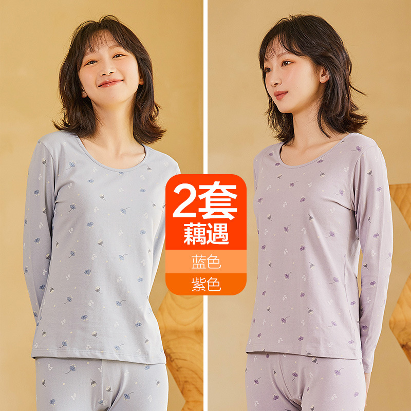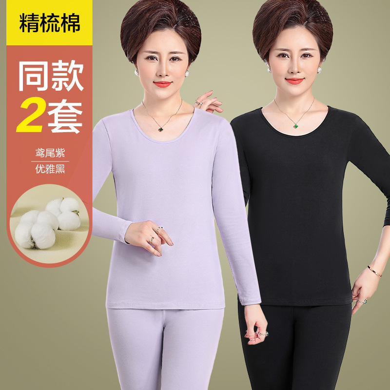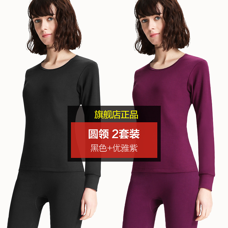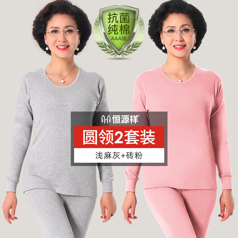 恒源祥秋衣秋裤套装女士纯棉中老年人妈妈保暖内衣薄款棉毛衫冬季_186_601 175(XXL) 【纯色】鸢尾紫+优雅黑
