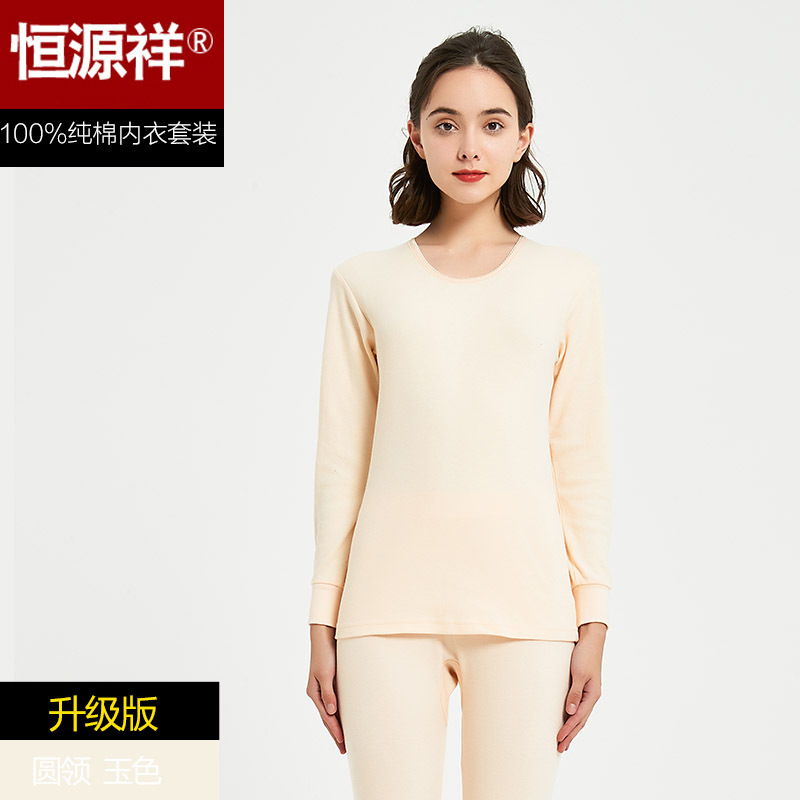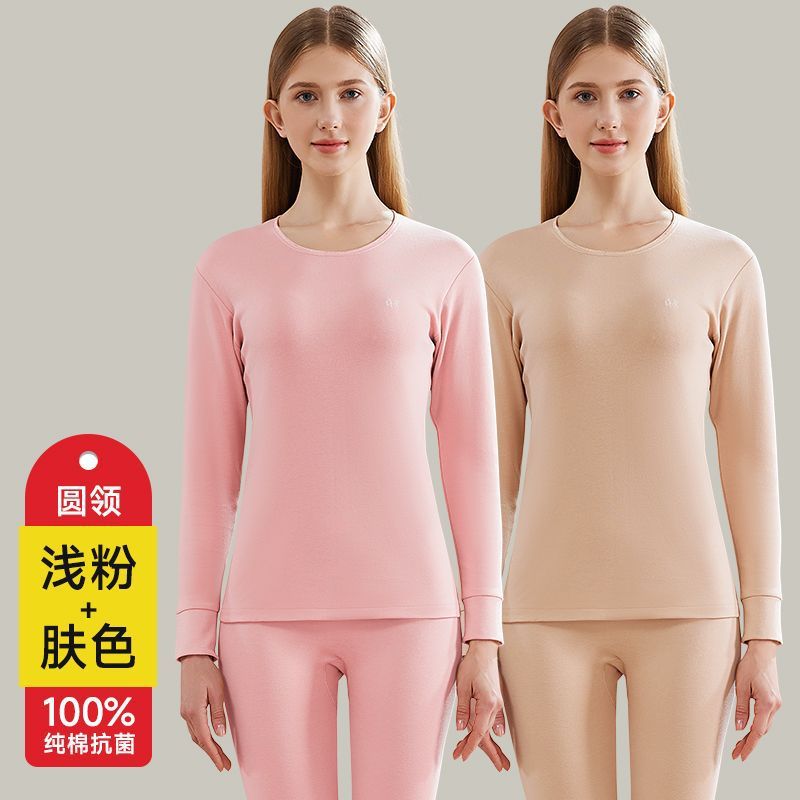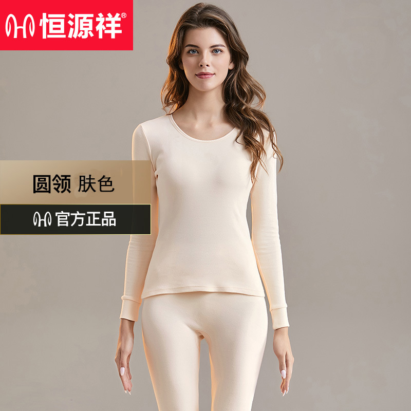 恒源祥女士秋衣秋裤纯棉保暖内衣套装秋冬款线裤线衣棉毛裤女薄款_754_27 3XL185/110 抗菌圆领浅粉+肤色