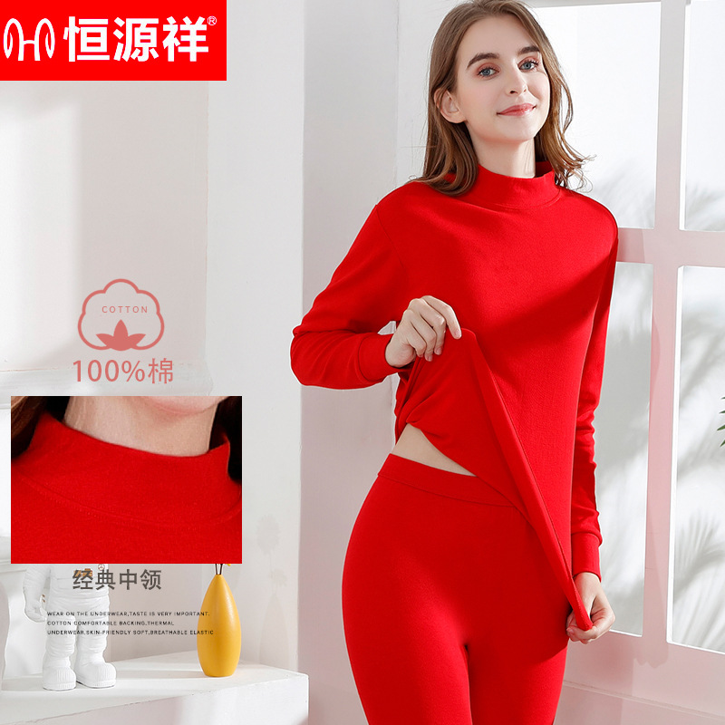 恒源祥秋衣裤女士棉薄款秋裤纯棉毛衫修身打底保暖内衣套装秋季_852 160/S 莱卡粉色
