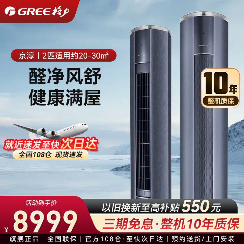 格力2匹 京淳 高效除甲醛 新1级能效客厅空调立式空调柜机 格力空调KFR-50LW/NhDj1BGj