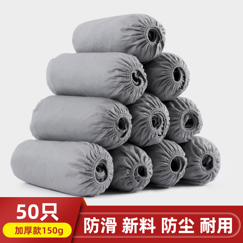 一次性鞋套家用室内加厚耐磨无纺布反复使用防水防滑专用脚套儿童 常规无纺布50只烟灰色