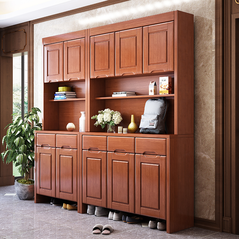 青木川 实木鞋柜 家用进门口大容量置物柜客厅门厅玄关柜鞋柜一体靠墙加高柜两门收纳储物柜子 简约现代中式 五门【海棠色】198.8x40x200cm