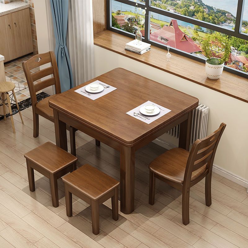 青木川 全实木餐桌四人纯实木餐桌椅组合套装 正方形家用客厅餐厅吃饭桌子小户型方桌八仙桌吃饭桌子出租房木质简约现代 胡桃色 长宽80厘米餐桌+两凳+两椅
