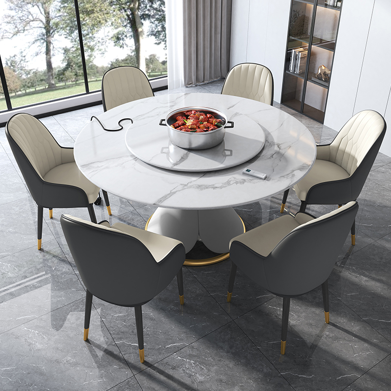 青木川 岩板餐桌大理石餐桌椅组合餐厅客厅家用酒店1.2米1.6米一米五小户型圆桌圆形吃饭桌子带转盘网红款不锈钢皮质家具 1.5米【一桌六椅】 桌面纹理备注