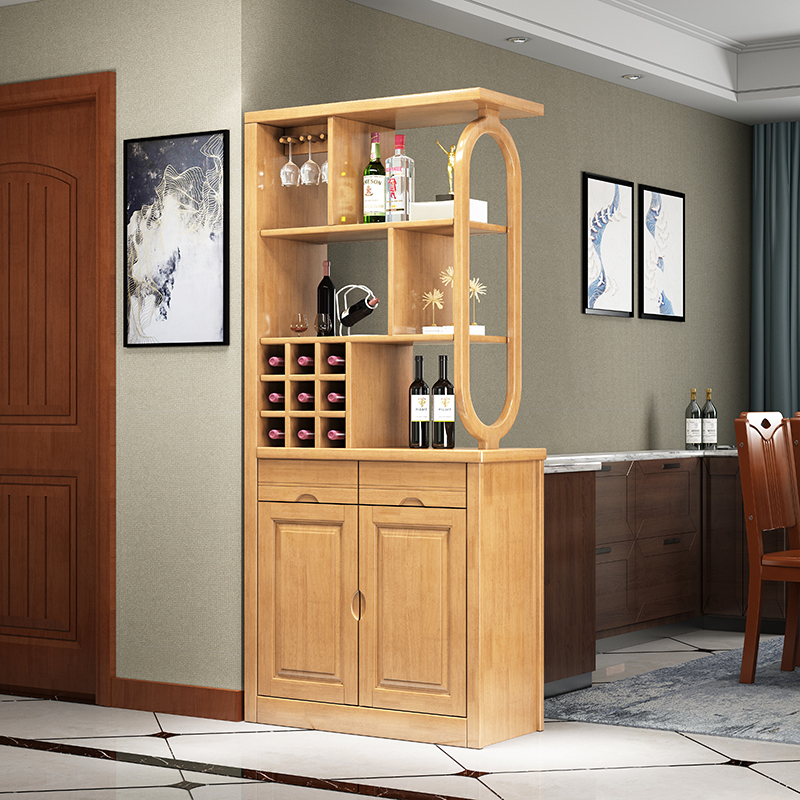 青木川实木酒柜鞋柜一体靠墙客厅家用入户进门口玄关隔断屏风柜双面高柜 两门榉木色【90cm长】