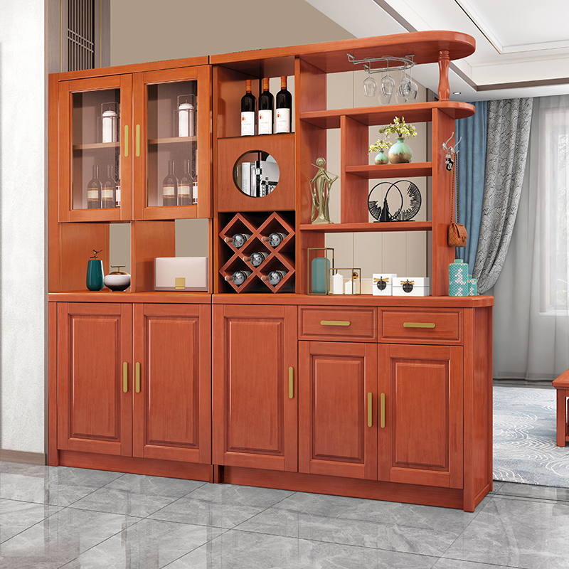 青木川 中式实木酒柜隔断柜间厅柜1.2米入户玄关柜客厅进门口红酒柜装饰柜双面屏风置物柜鞋柜一体门厅柜 海棠色【120x40x200cm】