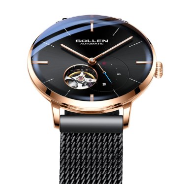 梭伦(SOLLEN)手表新品男表防水夜光超薄韩版钢带自动机械表男学生时尚潮流商务休闲腕表SL305X 金钉黑面