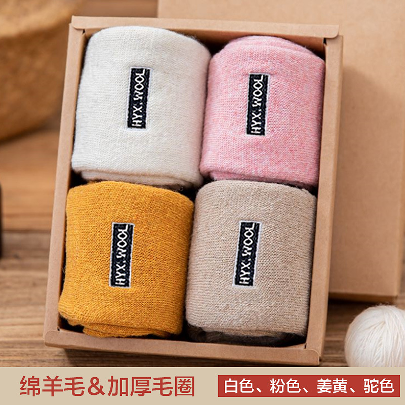 恒源祥羊毛保暖袜子女士冬德绒发热加绒加厚秋冬季防寒超厚中筒袜_66 均码【加厚毛圈羊毛德绒发热】 【刺绣】白色/姜黄/粉色/驼色