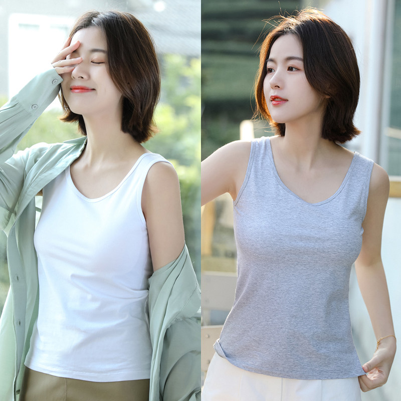 恒源祥吊带背心女黑色百搭内穿无袖上衣小打底衫白色春夏内搭外穿 185/110 白色+灰色