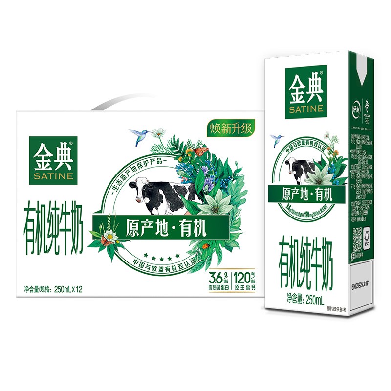 换个品牌的纯牛奶,伊利金典有机纯牛奶品道更醇;每100ml3.8g优质乳蛋白、125mg原生高钙。