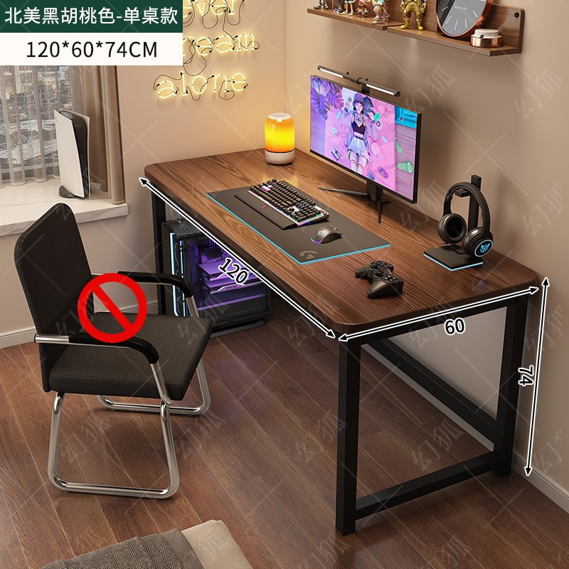 桌子简易出租屋家用工作电竞桌卧室办公桌学生学习书桌台式电脑桌 经典款-双横杆加固北美黑胡桃色120CM