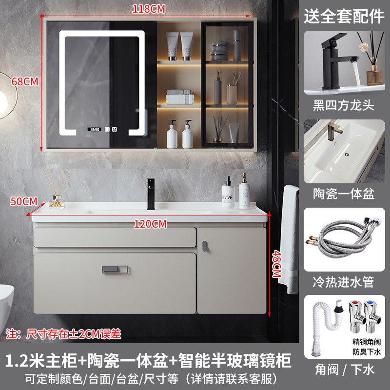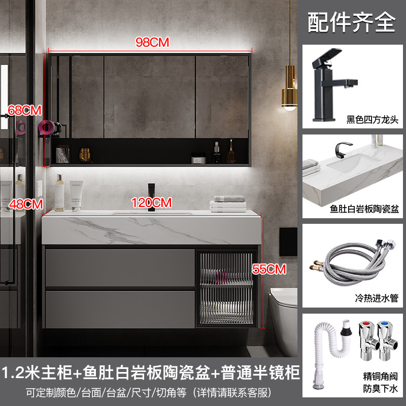汉德斯科卫浴柜岩板陶瓷一体盆智能镜柜浴室柜组合 120cm标准镜柜款 送入户安装-送龙头配件