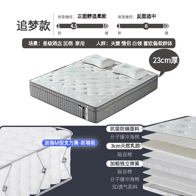 星级酒店床垫天然乳胶记忆棉床垫3E椰棕黄麻软硬两用护脊3D床垫 追梦款(尊享乳胶23cm厚 150*190cm