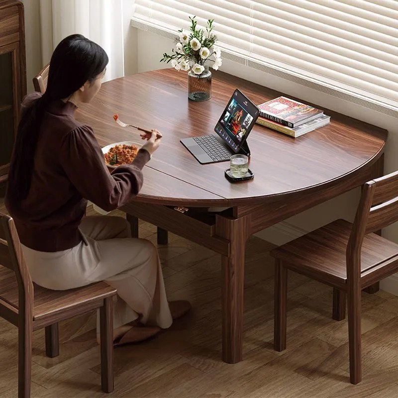 青木川 新中式实木餐桌椅组合套装客厅餐厅家用小户型可伸缩折叠1.5米方圆可变多功能4人6人圆形岩板乌金木吃饭桌子 乌金色 1.35米实木餐桌+四椅