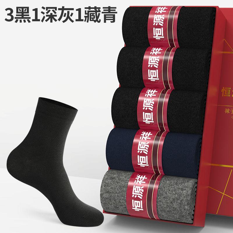 恒源祥袜子秋冬男士中筒加厚款棉袜防臭透气耐磨商务男袜船袜短袜_353_580 1盒秋冬加厚中筒(38-44码) 3黑1深灰1藏青
