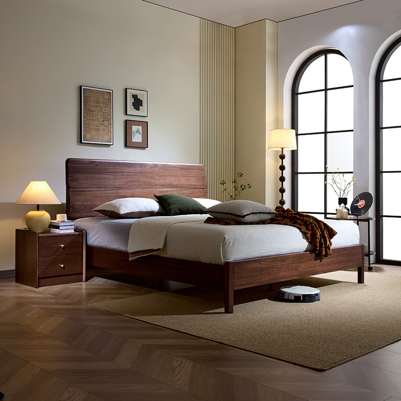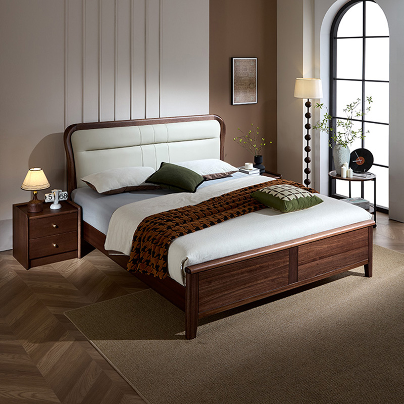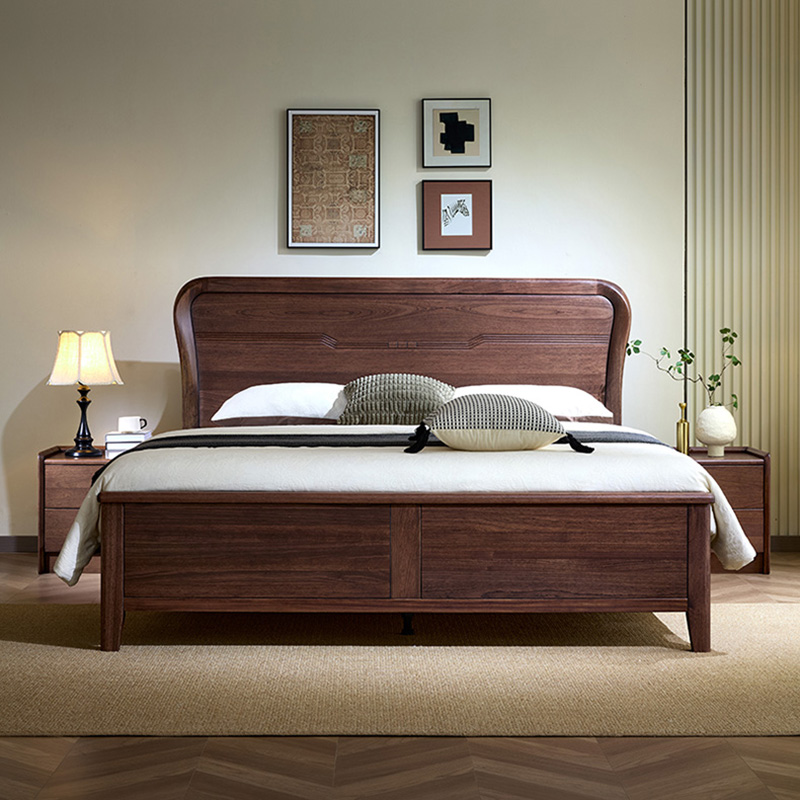 青木川 简约现代南美黑胡桃木全实木床1.8米双人床1.5米两米单人床大板直拼卧室家具带软包家用休闲成人结婚榫卯床架 框架床 1.8*2米