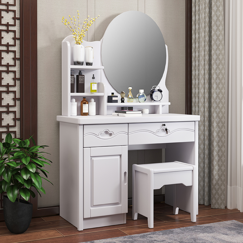 青木川 简约现代实木梳妆台主卧室卧室小户型家用收纳储物柜床头床尾农村带锁雕花化妆桌 白色