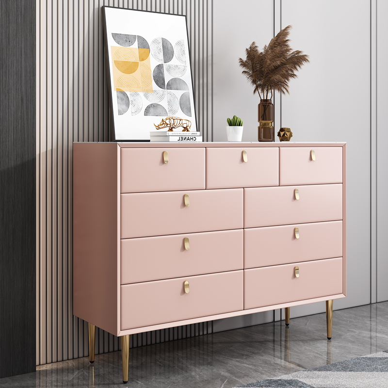 青木川 意式轻奢五斗柜主卧室房间客厅9斗橱多抽屉式落地床边柜岩板大容量立柜矮柜入户玄关门厅柜收纳储物柜电视柜床尾柜多用柜 淑女粉【120x40x93cm】