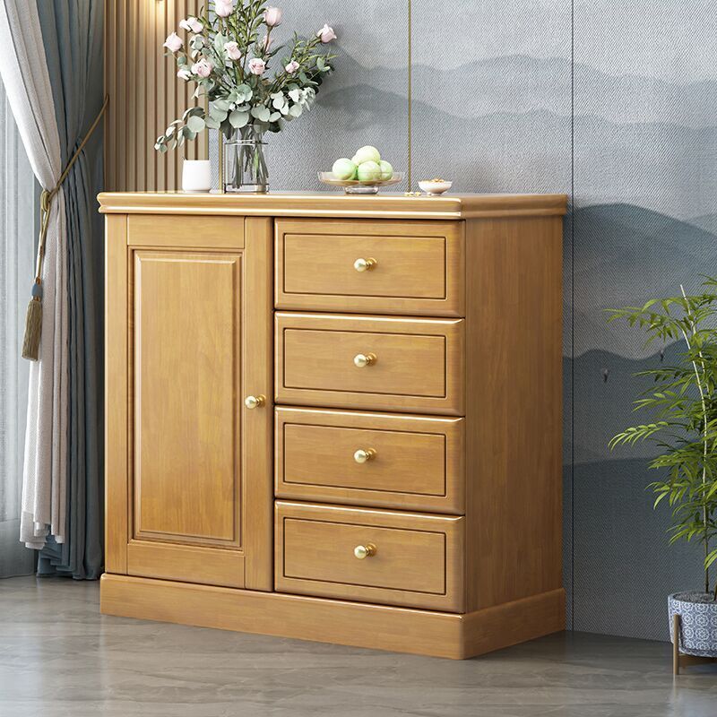 青木川 五斗柜实木卧室主卧室房间靠墙小户型多抽屉式落地立柜矮柜入户玄关柜门厅柜收纳柜储物柜四五斗橱 四抽屉【榉木色】80x40x80cm