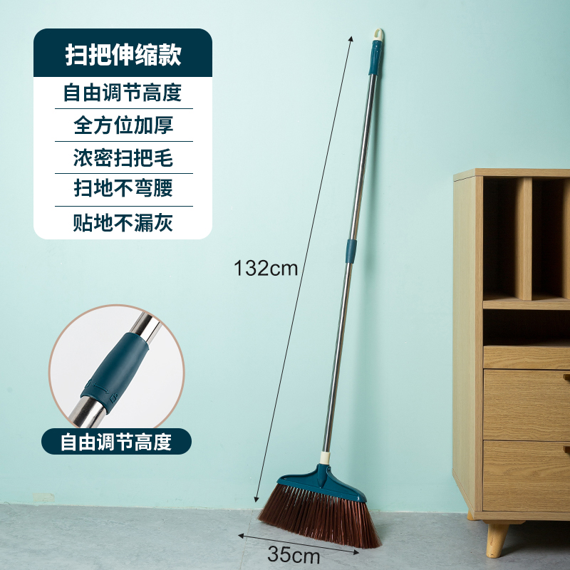 扫把簸箕套装教室扫地笤帚单个软毛不锈钢塑料扫帚家用不粘头发 单深蓝色A款软毛单支伸缩扫把