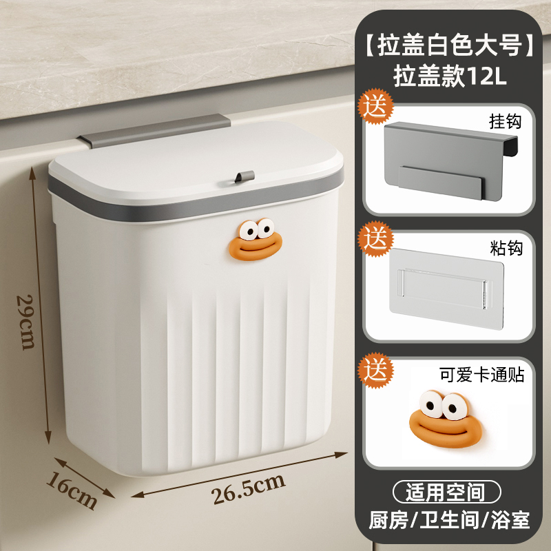 垃圾桶家用厕所纸桶卫生间带盖大容量卫生桶夹缝壁挂客厅厨房纸篓 香肠嘴-12L珍珠白滑盖掀盖送挂钩粘钩 均码
