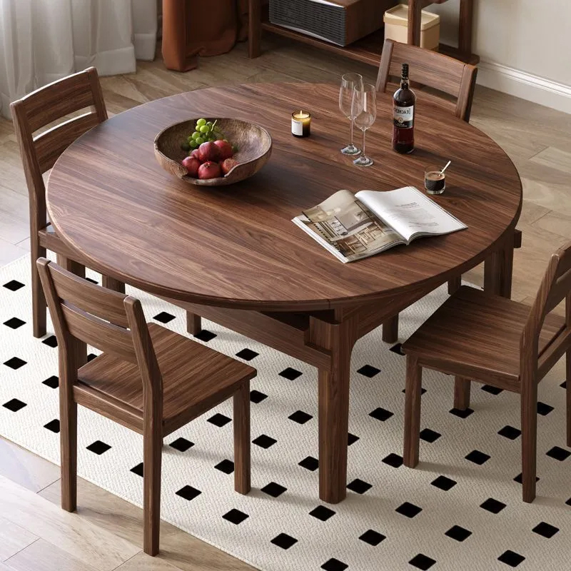 青木川 简约现代南美黑胡桃木餐桌椅组合四人六人6人客厅餐厅家用小户型方圆可变圆桌多功能圆形吃饭桌子跳台 1.2米长餐桌+六椅 黑胡桃色