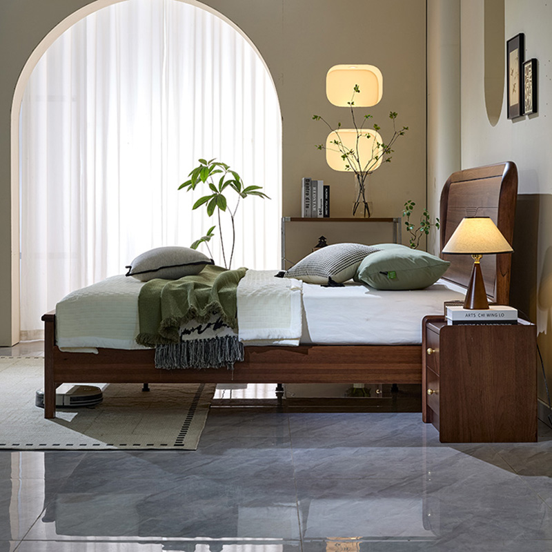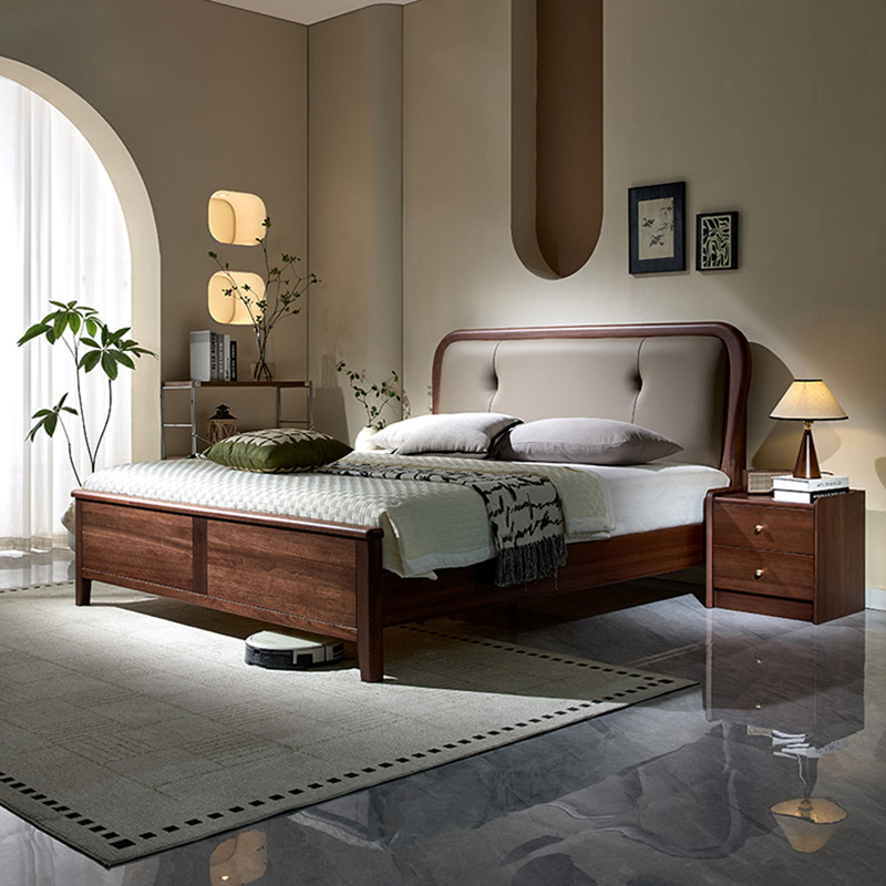 青木川 简约现代胡桃木实木床1.8米双人床1.5米x2m主卧室房间小户型家用休闲成人结婚榫卯床架床铺 框架床 1.5*2米