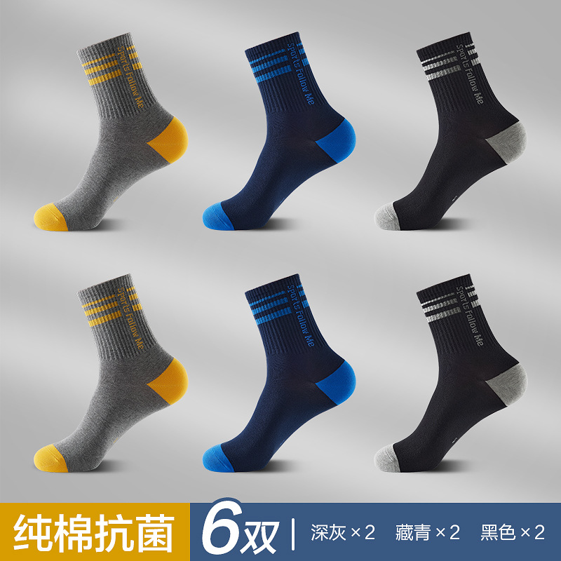 恒源祥袜子男中筒袜纯棉春秋季吸汗透气运动黑色棉男士长袜_699 均码 2深灰/2藏青/2黑色