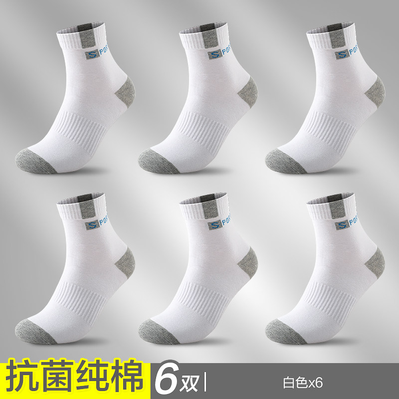 恒源祥袜子男中筒袜纯棉防臭吸汗秋季全棉篮球运动跑步长袜春秋款_845 均码【39-44码】运动防滑100%纯棉 【纯棉抗菌中筒款】6白色