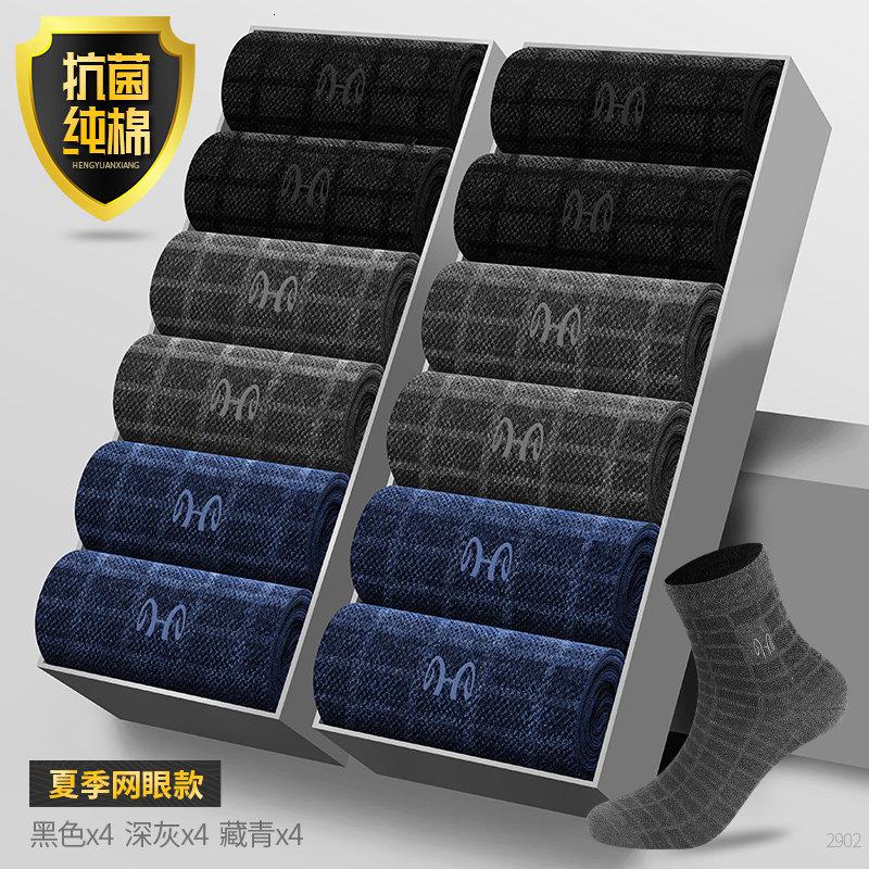 恒源祥袜子男士中筒纯棉夏季薄款运动网眼吸汗透气男长袜_100_93 均码【100%纯棉抗菌防臭吸汗透气】 02网眼抗菌款【4黑色4深灰4藏青】共发12双