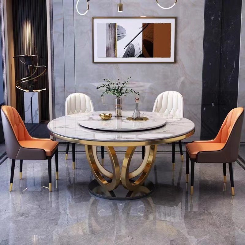青木川 大理石餐桌餐椅组合套装轻奢意式餐桌椅带转盘餐厅客厅小户型1.2M1.3米1.5米圆桌吃饭桌子圆形圆台简约现代 一桌四椅【1.3米长】 桌面大理石【颜色备注】
