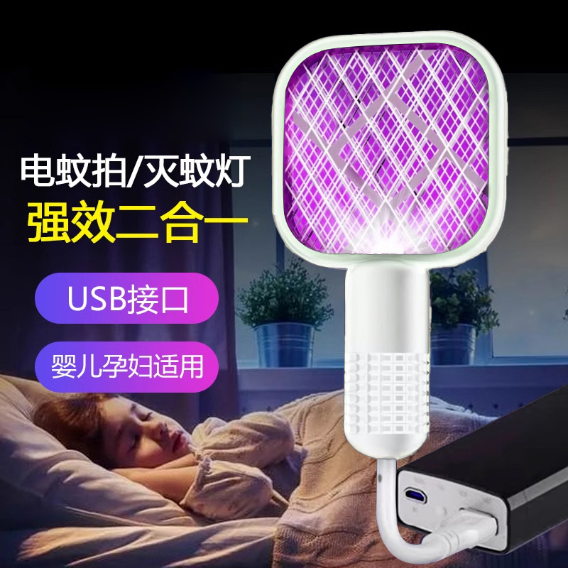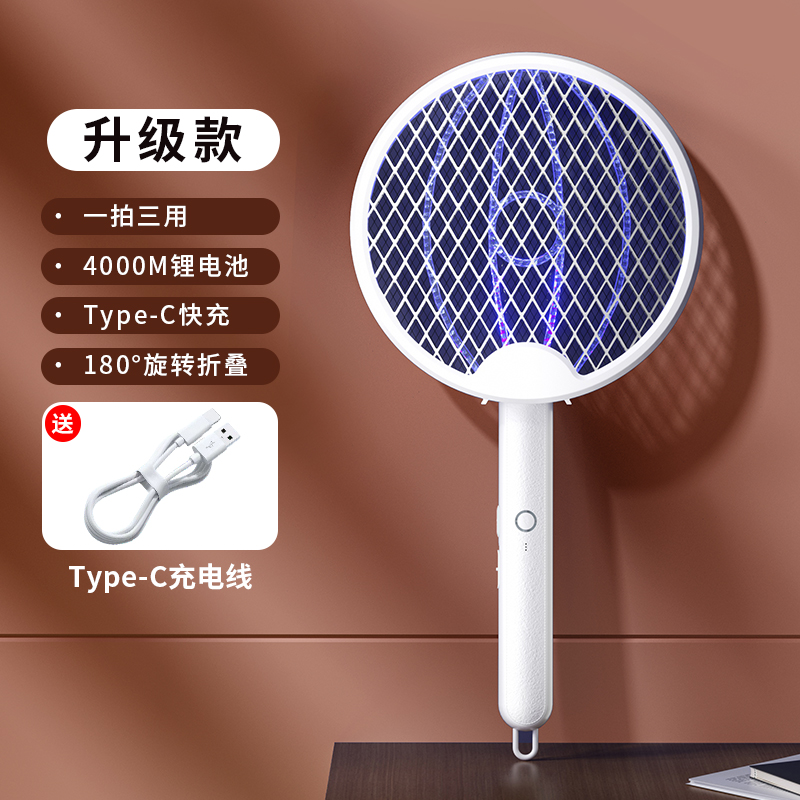 米折叠电蚊拍充电式家用强力锂电池灭蚊灯三合一驱蚊神器打苍蝇电 白色升级款