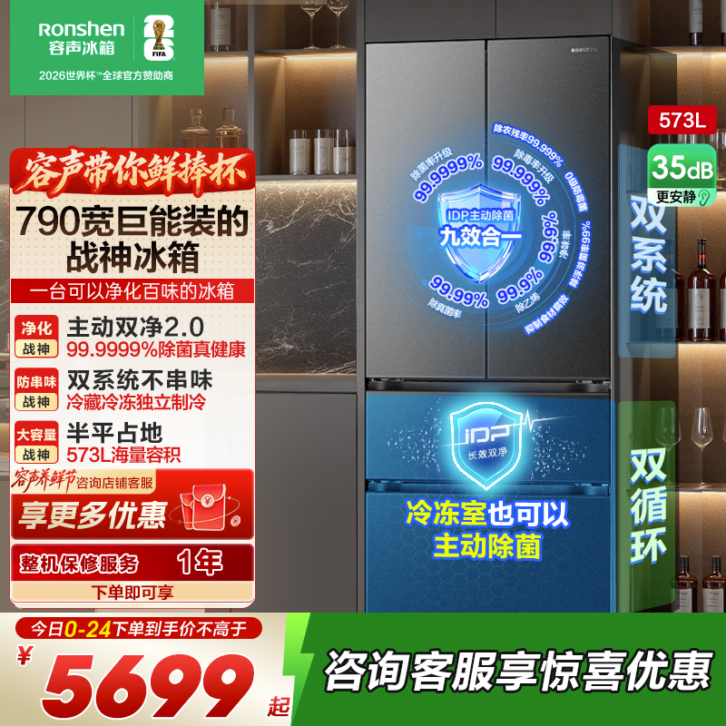 容声[526升级款]战神573L法式多门冰箱大容量双系统超薄嵌入式一级能效无霜BCD-573N40FQLAD
