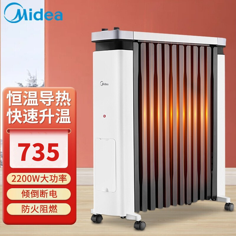美的 (Midea)取暖器NY2212-18C 油汀家用智能加宽暖气片油丁电暖器儿童防烫设计12片2200瓦