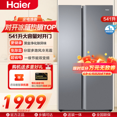 海尔冰箱BCD-541WGHSSEDG7 双开门 一级变频节能 风冷无霜大容量嵌入式家用海尔冰箱 新品