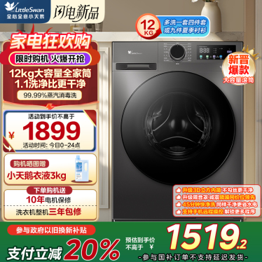 小天鹅(LittleSwan)12KG大容量变频全自动滚筒洗衣机 节能省电蒸汽消毒洗 一级能效 TG120V098WDT