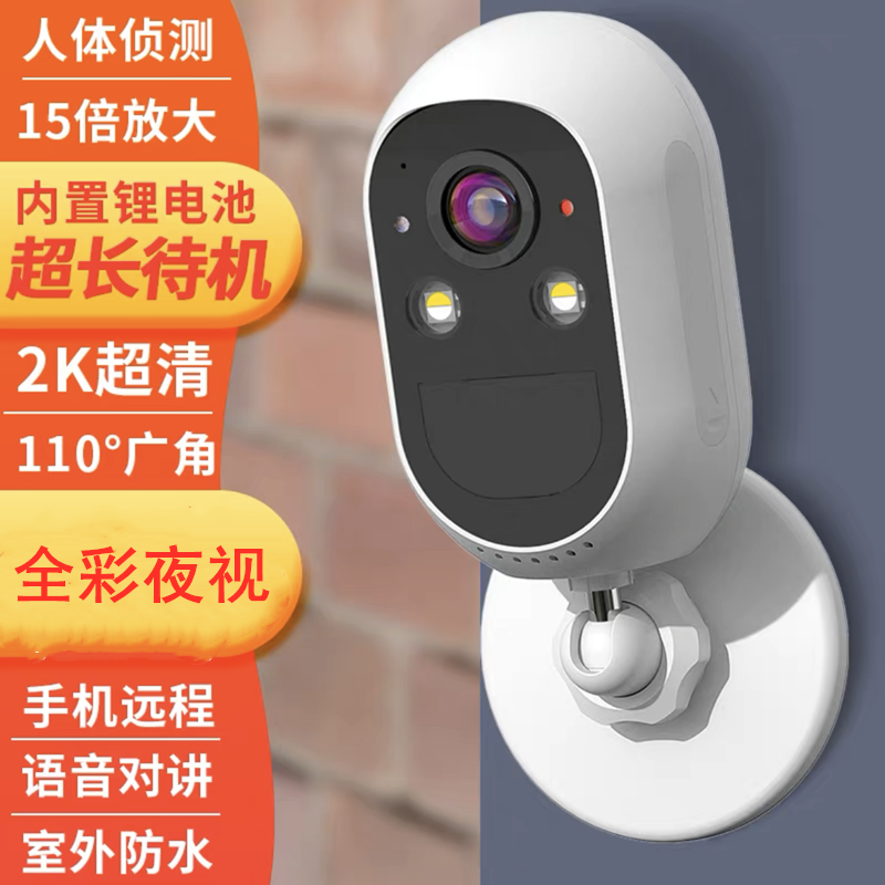 送7天循环监控录像卡 WIFI电池摄像头人体感应室内插电充电语音对讲监控器夜视高清家用远程连手机无网录像 5MP