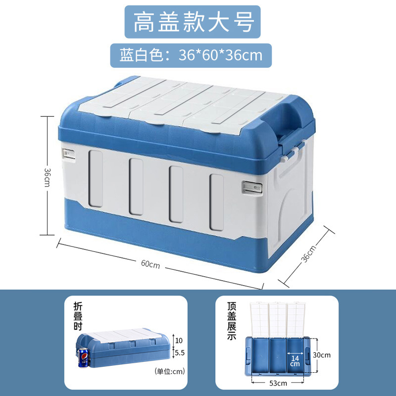 汽车后备箱收纳箱车用储物箱车内尾箱整理箱车载用品大全神器 升级加厚【大号70L】三盖蓝白色-带锁扣