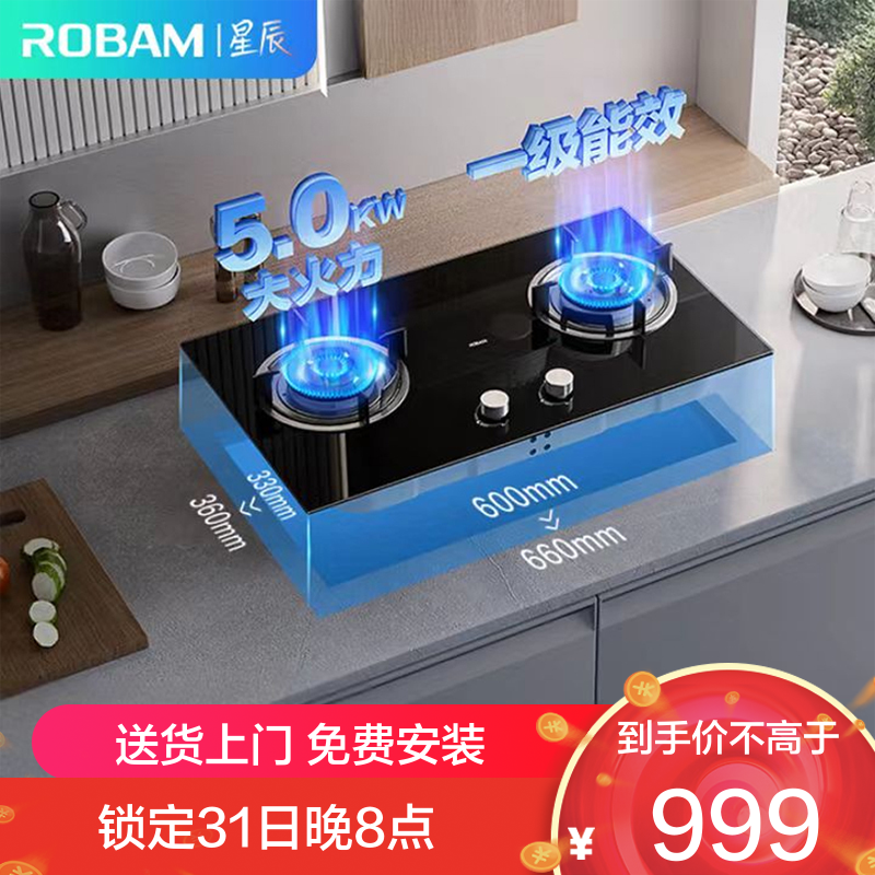 老板(Robam)5.2kW定时灶燃气灶自营煤气灶天然气灶具煤气灶双眼灶嵌入式炉具自营57B8A可(天然气)